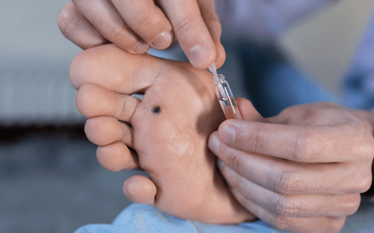 Surgical removal, performed under local anesthesia, for more persistent or painful warts. This procedure is quick (15–20 minutes) and can be done safely at home through our mobile podiatry service.